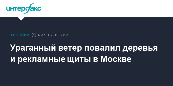 Ураганный ветер повалил деревья и рекламные щиты в Москве