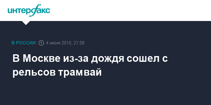 Москва. 4 июня. INTERFAX.RU - В Москве на Волоколамском шоссе дождь подмыл трамвайные пути, из-за этого с рельсов сошел трамвай, сообщил "Интерфаксу" источник в правоохранительных органах.