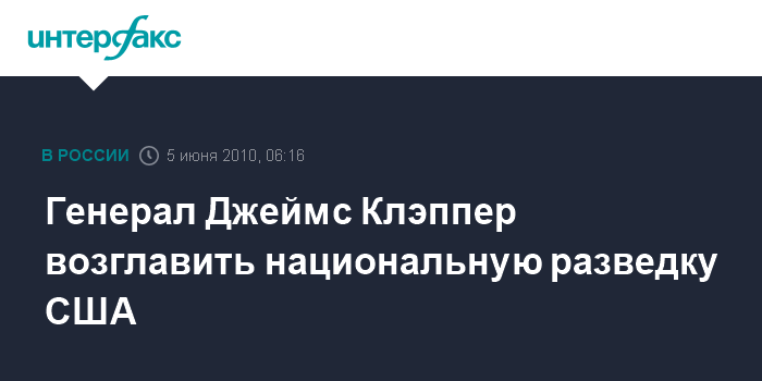 Москва. 5 июня. ИНТЕРФАКС - Президент США Барак Обама планирует назначить на должность главы американской разведки генерала Джеймса Клэппера.