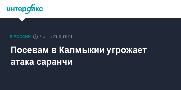 Ростов-на-Дону. 22 июня. ИНТЕРФАКС-ЮГ - Режим повышенной готовности к ЧС введен комиссией по чрезвычайным ситуациям Калмыкии в пяти районах республики в связи с угрозой распространения на их территории саранчи.