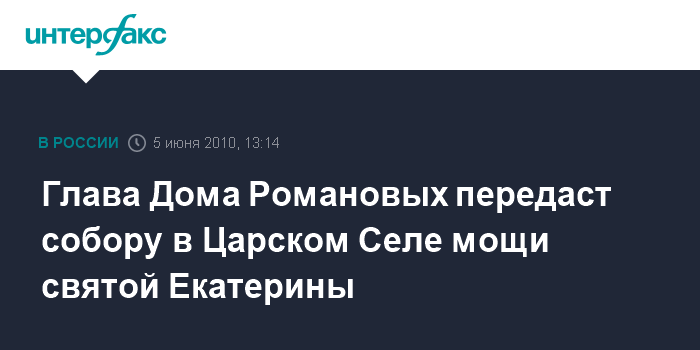 Глава Дома Романовых передаст собору в Царском Селе мощи святой Екатерины