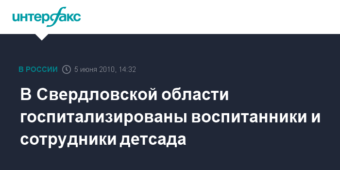 Позже количество госпитализированных возросло - к настоящему времени в стационар доставлены 45 детей и 6 сотрудников детсада, в числе которых заведующая, повар, сторож и воспитательницы, сообщили агентству в пресс-службе прокуратуры Свердловской области. Госпитализированным поставлен предварительный диагноз сальмонелез. Всего в саду в пятницу находилось 78 воспитанников.