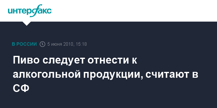 Пиво следует отнести к алкогольной продукции, считают в CФ