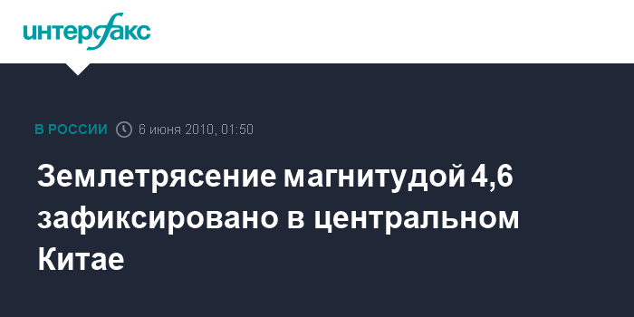 Землетрясение магнитудой 4,6 зафиксировано в центральном Китае