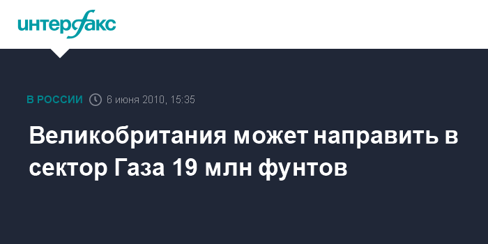 Лондон. 6 июня. INTERFAX.RU - В рамках операции ООН по оказанию помощи сектору Газа ожидается, что новое коалиционное правительство Великобритании подтвердит свое решение выделить региону 19 млн фунтов стерлингов (27,5 млн долларов), передает в воскресенье британская телерадиовещательная корпорация Би-би-си. Такое решение было принято после того, как шесть дней назад было перехвачено судно с гуманитарной помощью, в результате инцидента погибли 9 человек.