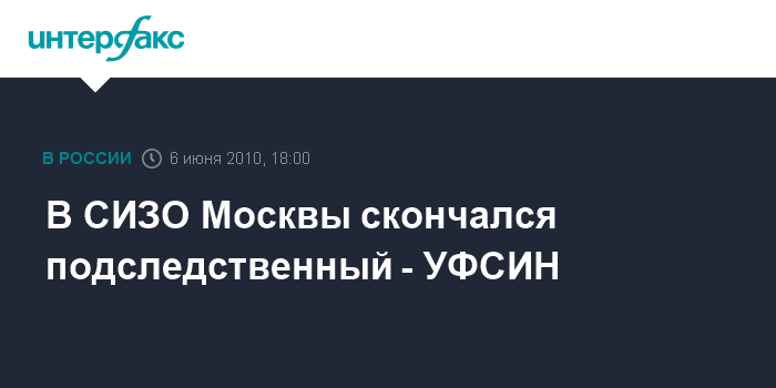 В СИЗО Москвы скончался подследственный - УФСИН
