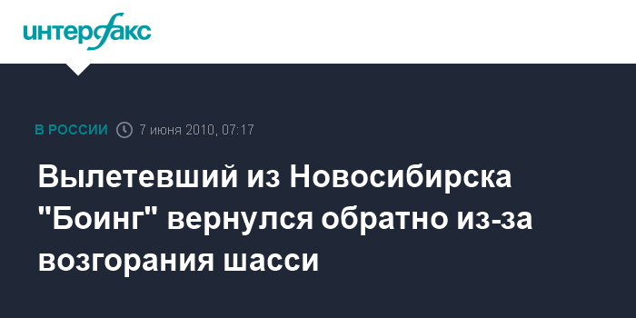 Как сообщила агентству "Интерфакс-Сибирь" старший помощник Западно-Сибирского транспортного прокурора Оксана Горбнова, в 7:23 по местному времени после взлета самолета из аэропорта Толмачево произошло возгорание шасси.