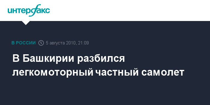 Уфа. 5 августа. INTERFAX.RU - В Белебеевском районе Башкирии потерпел крушение частный легкомоторный самолет, один человек погиб.