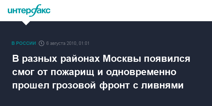 В разных районах Москвы появился смог от пожарищ и одновременно прошел грозовой фронт с ливнями