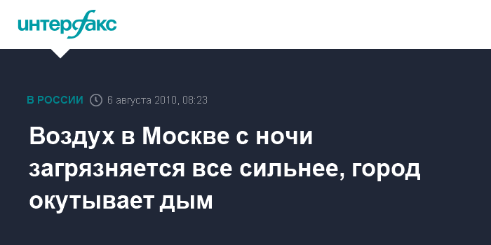 Собеседник агентства добавил, что рост концентрации загрязняющих веществ отмечался на протяжении всей ночи."Мы прогнозируем, что рост загрязнения продолжится, в городе ожидается очень высокое загрязнение атмосферного воздуха, сильное задымление уже отмечается на большей части российской столицы", - отметили в департаменте.