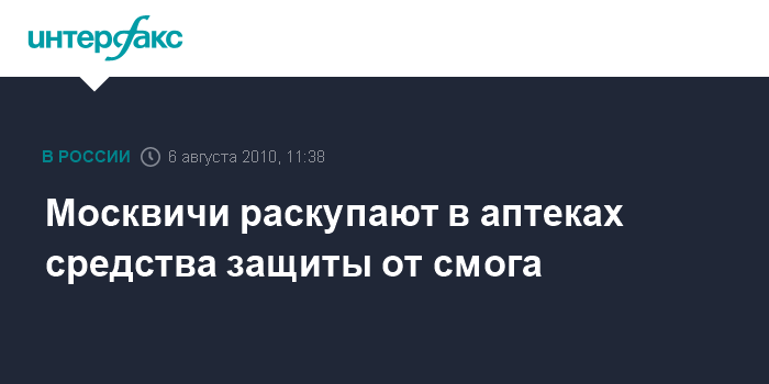 Москва. 6 августа. INTERFAX.RU - В столичных аптеках наблюдается ажиотажный спрос на ватно-марлевые повязки и респираторы в условиях едкого смога, вызванного пожарами на подмосковных торфяниках.