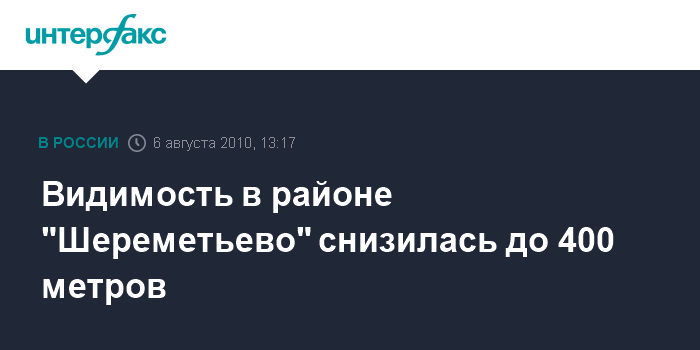 Москва. 6 августа. INTERFAX.RU - Видимость в районе аэропорта "Шереметьево" снизилась до 350-400 метров, задержек из-за смога нет, сообщили "Интерфаксу" в Росавиации.