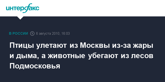 Птицы улетают из Москвы из-за жары и дыма, а животные убегают из лесов Подмосковья
