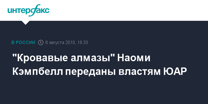 "Кровавые алмазы" Наоми Кэмпбелл переданы властям ЮАР