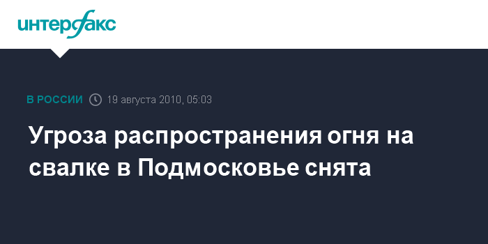 Москва. 19 августа. ИНТЕРФАКС - МЧС России сообщает о снятии угрозы распространения огня на свалке бытовых отходов в Щелковском районе Подмосковья.