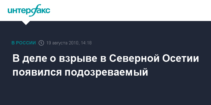 Пятигорск. 19 августа. INTERFAX.RU - В уголовном деле, возбужденном по факту взрыва на границе Северной Осетии и Ингушетии 17 августа, появился подозреваемый, сообщил журналистам министр внутренних дел РФ Рашид Нургалиев.