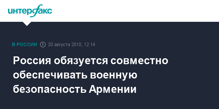 Россия обязуется совместно обеспечивать военную безопасность Армении