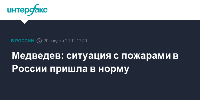 Ереван. 20 августа. INTERFAX.RU - Президент РФ Дмитрий Медведев заявил, что ситуация с пожарами в России нормализована.