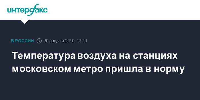 Москва. 20 августа. INTERFAX.RU - Температура воздуха на станциях московского метрополитена упала ниже нормы эксплуатации метро в летний период, сообщили "Интерфаксу" в столичной подземке в пятницу.