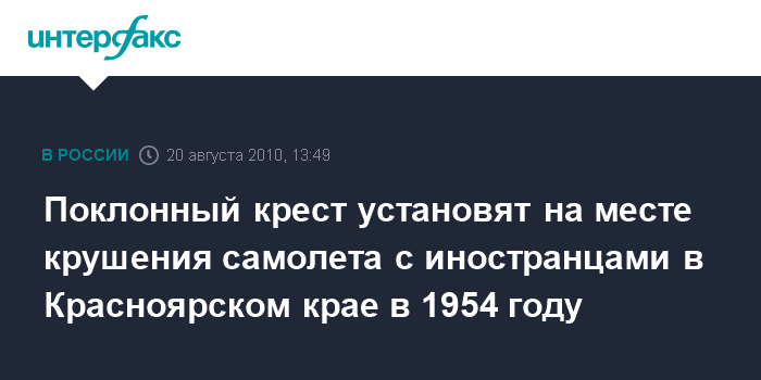 Поклонный крест установят на месте крушения самолета с иностранцами в Красноярском крае в 1954 году