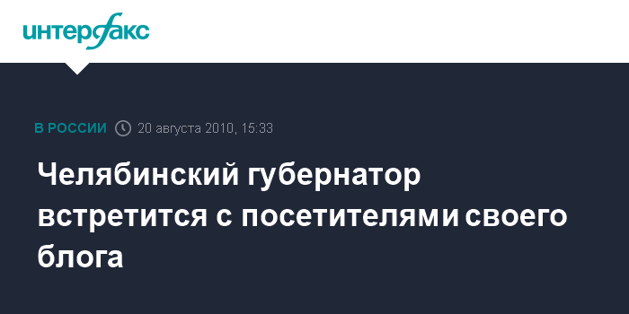 Челябинск. 20 августа. ИНТЕРФАКС-УРАЛ - Губернатор Челябинской области Михаил Юревич планирует провести встречу с посетителями своего блога.