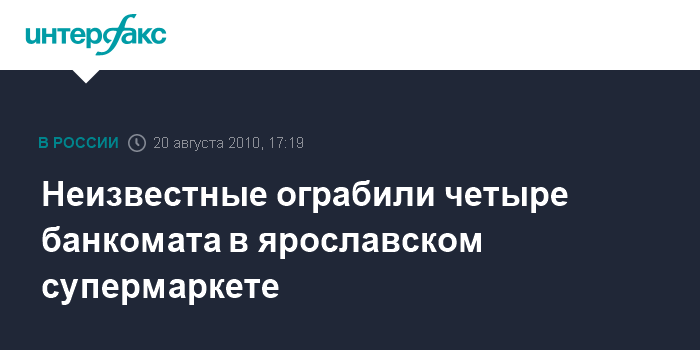 Ярославль. 20 августа. INTERFAX.RU - В Ярославле неизвестные ограбили четыре банкомата в магазине сети "Дикси", сообщили "Интерфаксу" в отделе информации и общественных связей УВД по Ярославской области.
