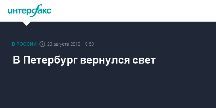 Санкт-Петербург. 20 августа. INTERFAX.RU - В районы Петербурга, обесточенные из-за аварии на подстанции в пятницу вечером, вернулся свет.