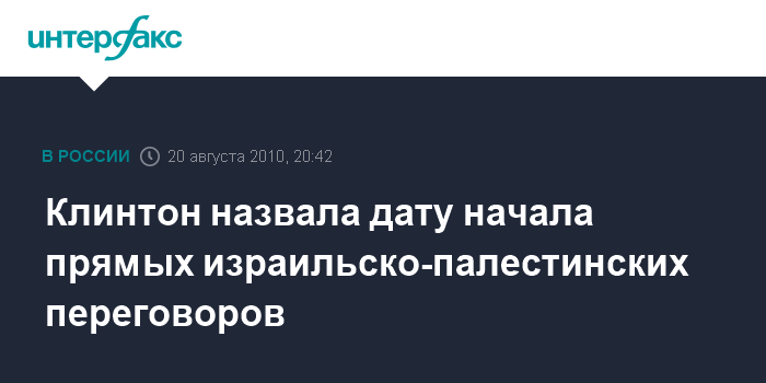 Клинтон назвала дату начала прямых израильско-палестинских переговоров