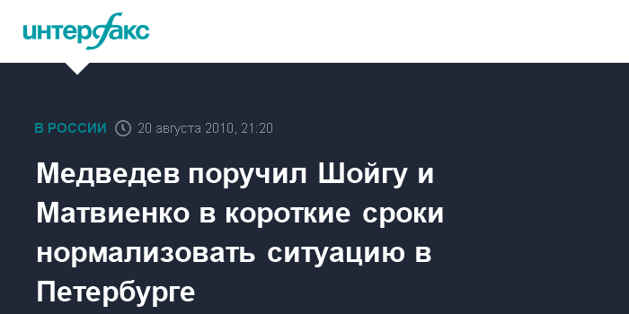 Медведев поручил Шойгу и Матвиенко в короткие сроки нормализовать ситуацию в Петербурге
