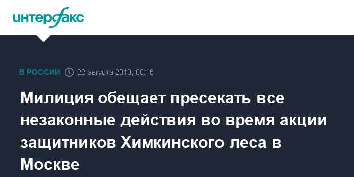 Москва. 22 августа. ИНТЕРФАКС - Глава пресс-службы ГУВД Москвы Виктор Бирюков заявил, что организаторы акции в защиту Химкинского леса на Пушкинской площади в центре Москвы вводят в заблуждение ее потенциальных участников, и предупредил, что милиция примет меры для пресечения незаконных действий.