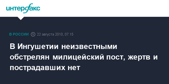 В Ингушетии неизвестными обстрелян милицейский пост, жертв и пострадавших нет