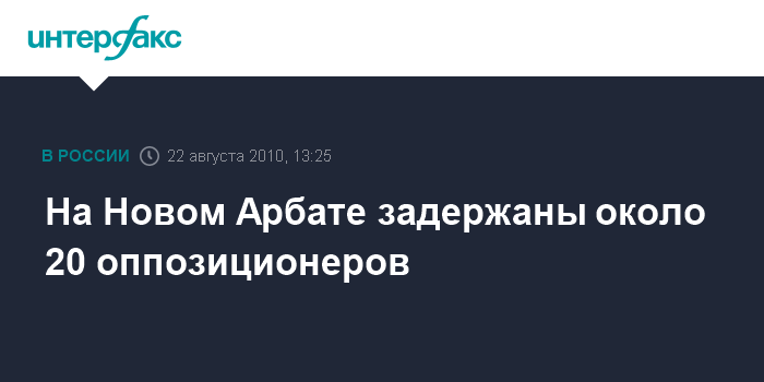 Москва. 22 августа. INTERFAX.RU - Милиция задержала около 20 человек, проводивших акцию в честь Дня флага на Новом Арбате в центре Москвы. В числе задержанных сопредседатель оппозиционного движения "Солидарность" Борис Немцов и руководитель его московского отделения Михаил Шнейдер, заявляют в "Солидарности".