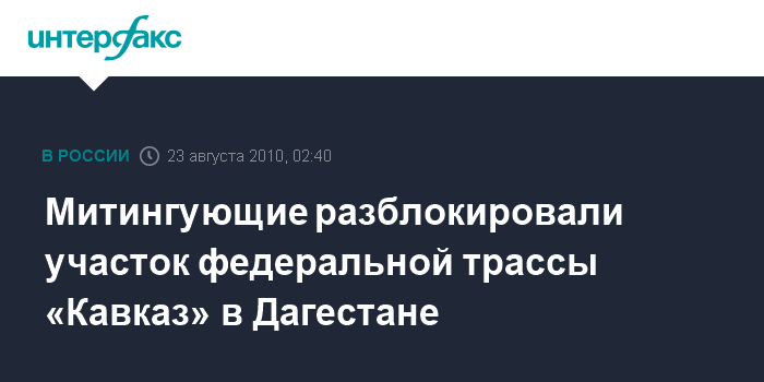 Махачкала. 23 августа. ИНТЕРФАКС-ЮГ - Федеральная автодорога "Кавказ", перекрытая в воскресенье группой жителей Бабаюртовского района Дагестана, разблокирована, сообщили "Интерфаксу" в пресс-службе МВД республики
