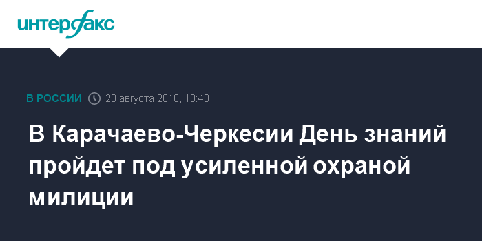 Москва. 23 августа. INTERFAX.RU - МВД по Карачаево-Черкесии предпримет усиленные меры безопасности для недопущения терактов на территории республики в День знаний.