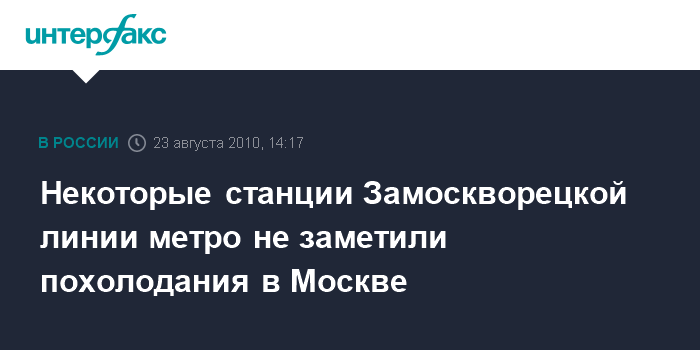Москва. 23 августа. INTERFAX.RU - Температура воздуха на станциях московского метрополитена стала снижаться благодаря похолоданию, сообщили "Интерфаксу" в столичном метро в понедельник.