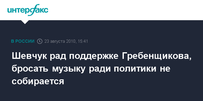 Шевчук рад поддержке Гребенщикова, бросать музыку ради политики не собирается