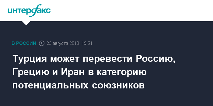 Турция может перевести Россию, Грецию и Иран в категорию потенциальных союзников