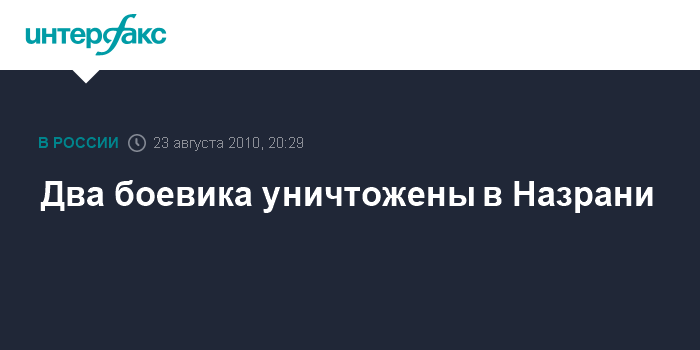 Назрань. 23 августа. INTERFAX.RU - На окраине муниципального округа Плиево города Назрань при попытке оказания вооруженного сопротивления уничтожены двое участников незаконных вооруженных формирований.