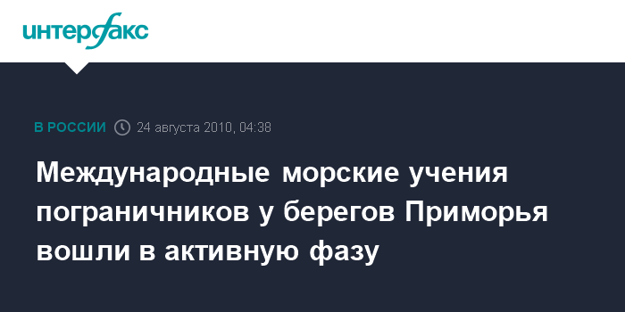 Владивосток. 24 августа. ИНТЕРФАКС-ДАЛЬНИЙ ВОСТОК - В Японском море у берегов Приморья международные морские учения с участием кораблей и авиации пограничников ряда стран Тихоокеанского региона вошли в активную фазу.