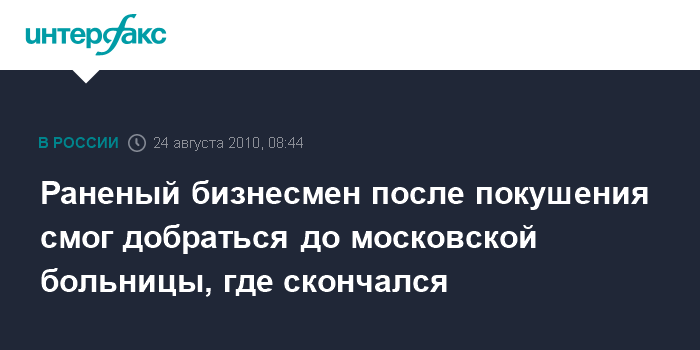 Раненый бизнесмен после покушения смог добраться до московской больницы, где скончался