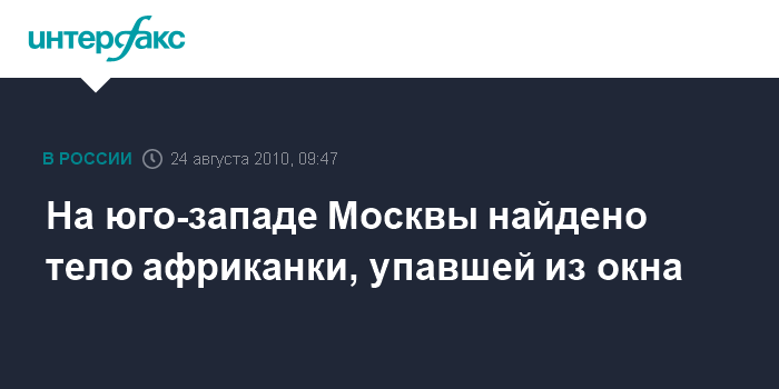 На юго-западе Москвы найдено тело африканки, упавшей из окна