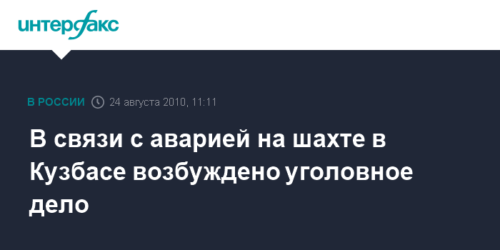 Кемерово. 24 августа. INTERFAX.RU - Следственными органами СКП в Кузбассе возбуждено уголовное дело по факту несчастного случая на шахте имени Ворошилова, где в результате аварии погибли двое рабочих, сообщила агентству "Интерфакс" официальный представитель СУ СКП РФ по Кемеровской области Надежда Ананьева.