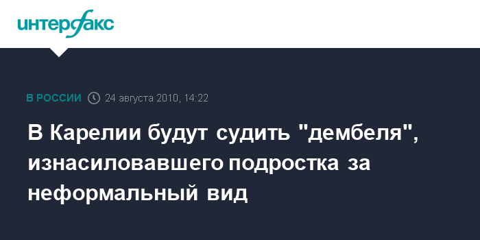В Карелии будут судить "дембеля", изнасиловавшего подростка за неформальный вид