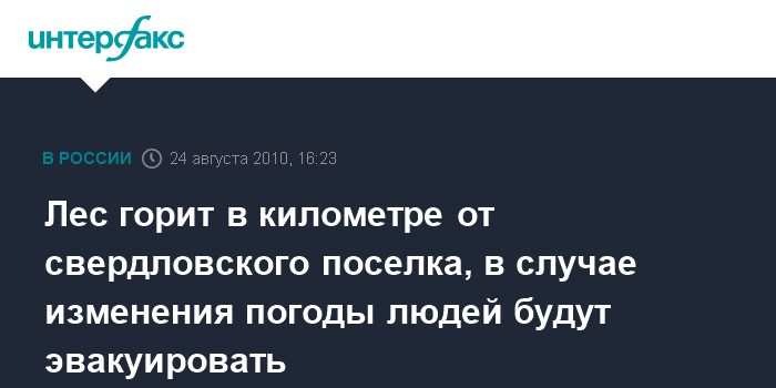 Екатеринбург. 24 августа. INTERFAX.RU - Расстояние от кромки лесного пожара до населенного пункта Баяновка в Свердловской области составляет 1 км.