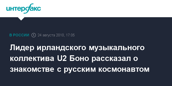 Лидер ирландского музыкального коллектива U2 Боно рассказал о знакомстве с русским космонавтом