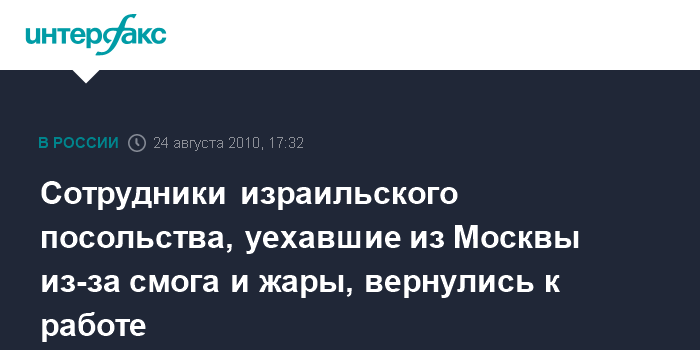 Сотрудники израильского посольства, уехавшие из Москвы из-за смога и жары, вернулись к работе