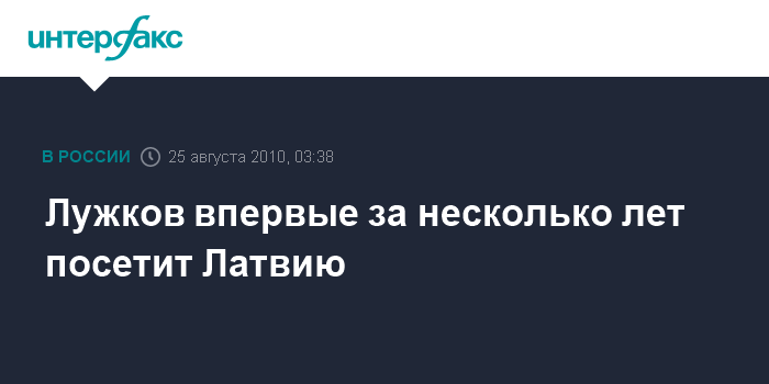 Москва. 25 августа. INTERFAX.RU - Столичный градоначальник Юрий Лужков впервые за последние несколько лет в среду с однодневным визитом посетит Латвию во главе делегации правительства Москвы, сообщили "Интерфаксу" в московской мэрии.