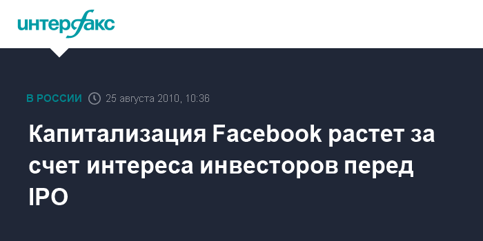Facebook, которая ранее предполагала провести IPO в 2011 году, в конце июля дала понять, что вряд ли будет размещать акции ранее 2012 года. При этом работники и инвесторы могут свободно продавать принадлежащие им акции компании, не дожидаясь IPO.