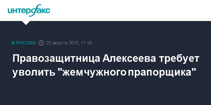 "Его должны, как минимум, уволить из милиции", - сказала Алексеева "Интерфаксу" в среду.