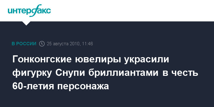Гонконг. 25 августа. INTERFAX.RU - Гонконгская ювелирная компания TSL придумала необычный способ отпраздновать 60-летие героя комиксов и мультфильмов Снупи - ее дизайнеры изготовили фигурку персонажа, отделанную драгоценными камнями на 207 каратов, пишет Antwerp Facets.